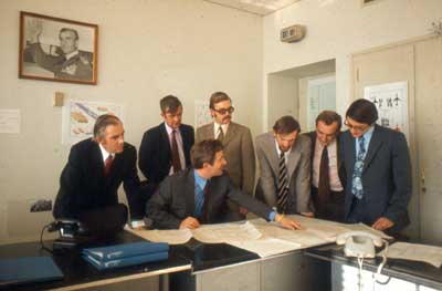 L to R Mike ?, Dave Brown, Richard Chambers (seated), John South,  Peter Smith-Cullen, Chris Barker, Bill Boynton.