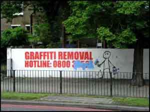 Is a real pain, it makes street look shabby and derelict, not a way to treat the neighbourhood. Maidenhead have a team which costs £50,000 per year to keep going. So use them................... The Royal Borough's action against graffiti reflects local concern about anti-social behaviour in our community. The Streetcare Operations Task Force is a specially-trained and equipped team which acts fast to remove graffiti and flyposting effectively from public areas and council property The team can also remove graffiti from private property and business premises, although there is a charge for this service and you will be asked to sign an indemnity form before work can get under way. What can you do to help?